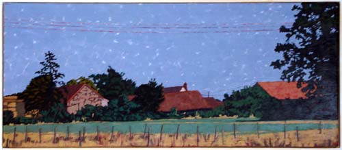 Fields near Déscartes, France oil on panel UF 5⅜" x 16" (13.7cm x 40.6cm); F 11¼" x 22" (28.6cm x 55.9cm) |