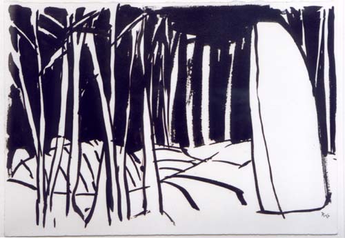 La Roche de Guihalon, Brittany india ink on paper UF 10¼" x 14¼" (26cm x 26cm); F 18½" x 22¾" (47cm x 57.8cm) |