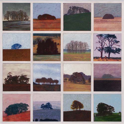 | Clumps x16 oil on museum board UF (16 panels, each) 4¾" x 4¾" (12cm x 12cm); F 25½" x 25½" (65cm x 65cm) |