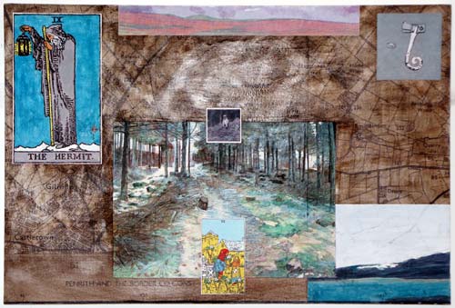 The Hermit oil, ink, vinyl, collage and giclée on board UF 19⅝" x 29⅛" (50cm x 74cm) |